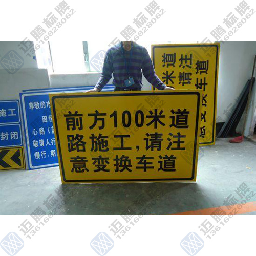 道路施工提示标志尺寸:常见规格材料:铝板,反光膜 -