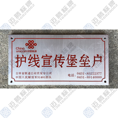 冲压标牌通信光缆尺寸:14x9cm材料:铝板,冲压工艺 -
